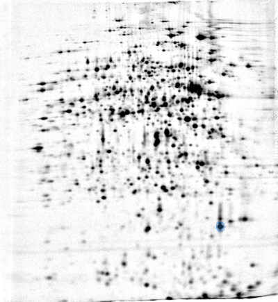 The table shows normalized volumes (%Vol) of the visible expression profile for spot ID '13444' on gel image 'control_01'.