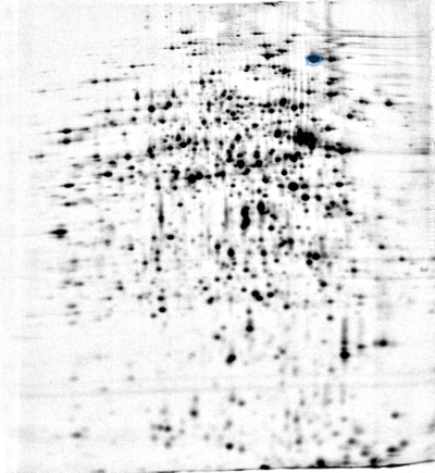 The table shows normalized volumes (%Vol) of the visible expression profile for spot ID '13850' on gel image 'control_01'.